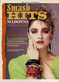 Smash Hits today, in the 90's and in the 80's. The masthead has changed and the more modern one uses much brighter colours to stand out. It also gradually gets more and more cluttered on the front cover, ranging from an image of Madonna and a few sell lines in the 80's, to 7 images and numerous sell lines, anchorage titles and sections.